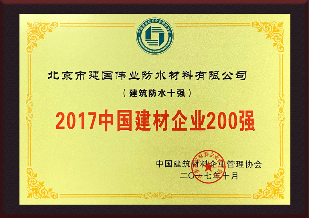 2017中國建材企業(yè)200強(qiáng)(建筑防水10強(qiáng))