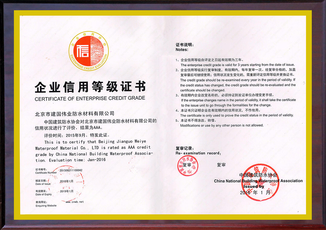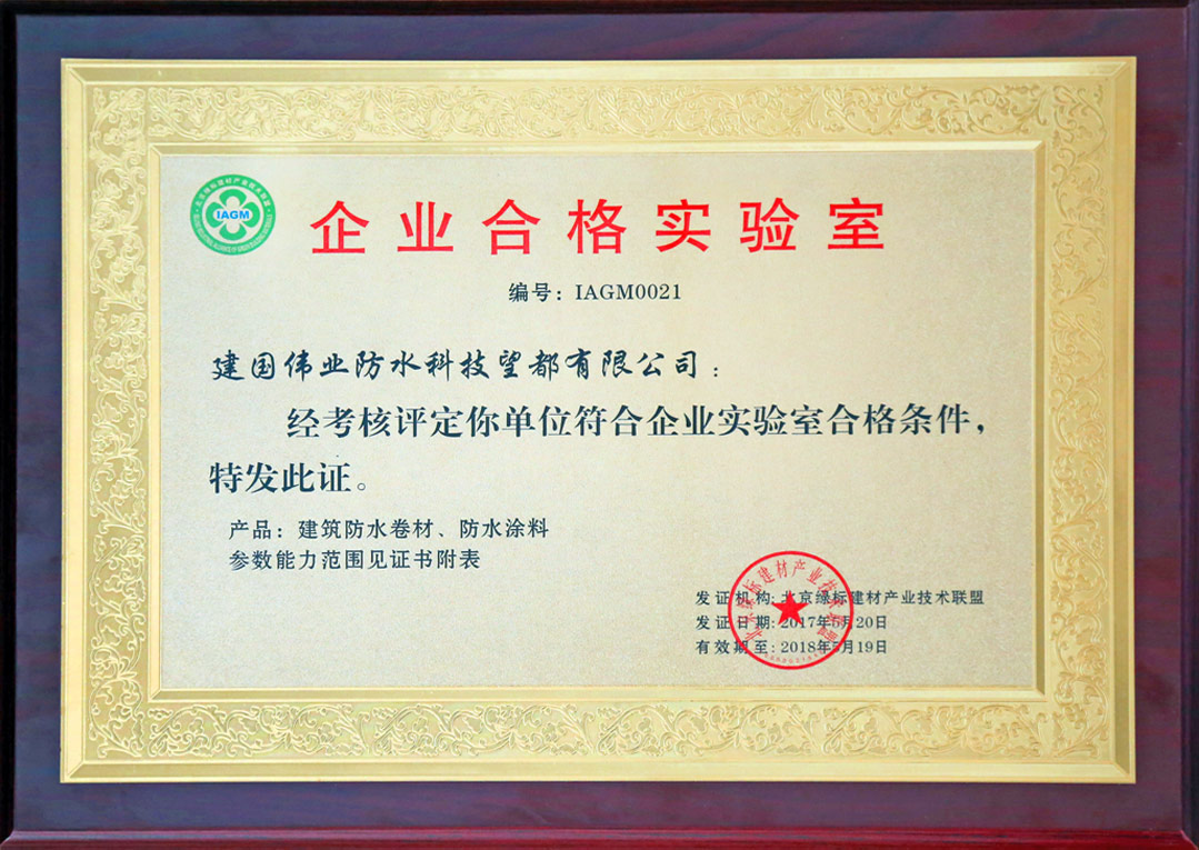 北京市建國偉業(yè)防水材料有限公司企業(yè)合格實(shí)驗(yàn)室