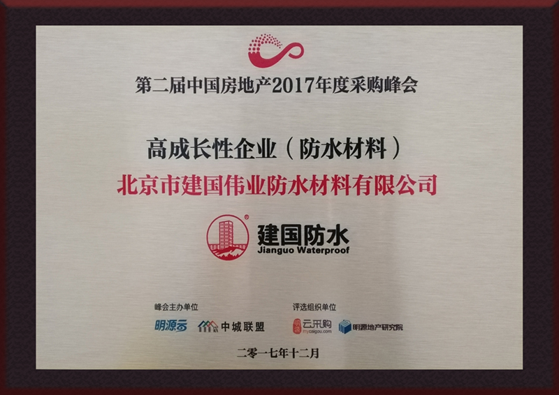 2017年12月7日,由中國(guó)建筑防水協(xié)會(huì)主辦的《全國(guó)建筑防水行業(yè)質(zhì)量提升工作大會(huì)暨2017年建筑防水行業(yè)年會(huì)》在??谡秸匍_(kāi)。本次會(huì)議對(duì)2017年防水行業(yè)取得的成績(jī)和質(zhì)量提升方面面對(duì)的問(wèn)題、挑戰(zhàn)進(jìn)行了詳細(xì)解讀,對(duì)質(zhì)量提升提出了新的要求和建議,并對(duì)質(zhì)量提升及科技進(jìn)步企業(yè)進(jìn)行表彰。建國(guó)偉業(yè)集團(tuán)榮獲“2016-2017年建筑防水行業(yè)先進(jìn)企業(yè)”稱號(hào)。